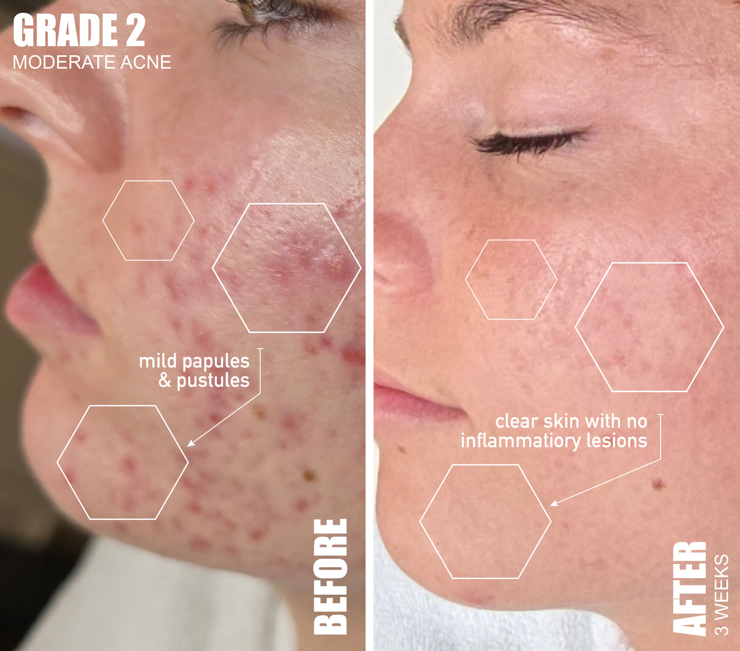 - Clinical findings: Dominated by open and closed comedones (blackheads and whiteheads).